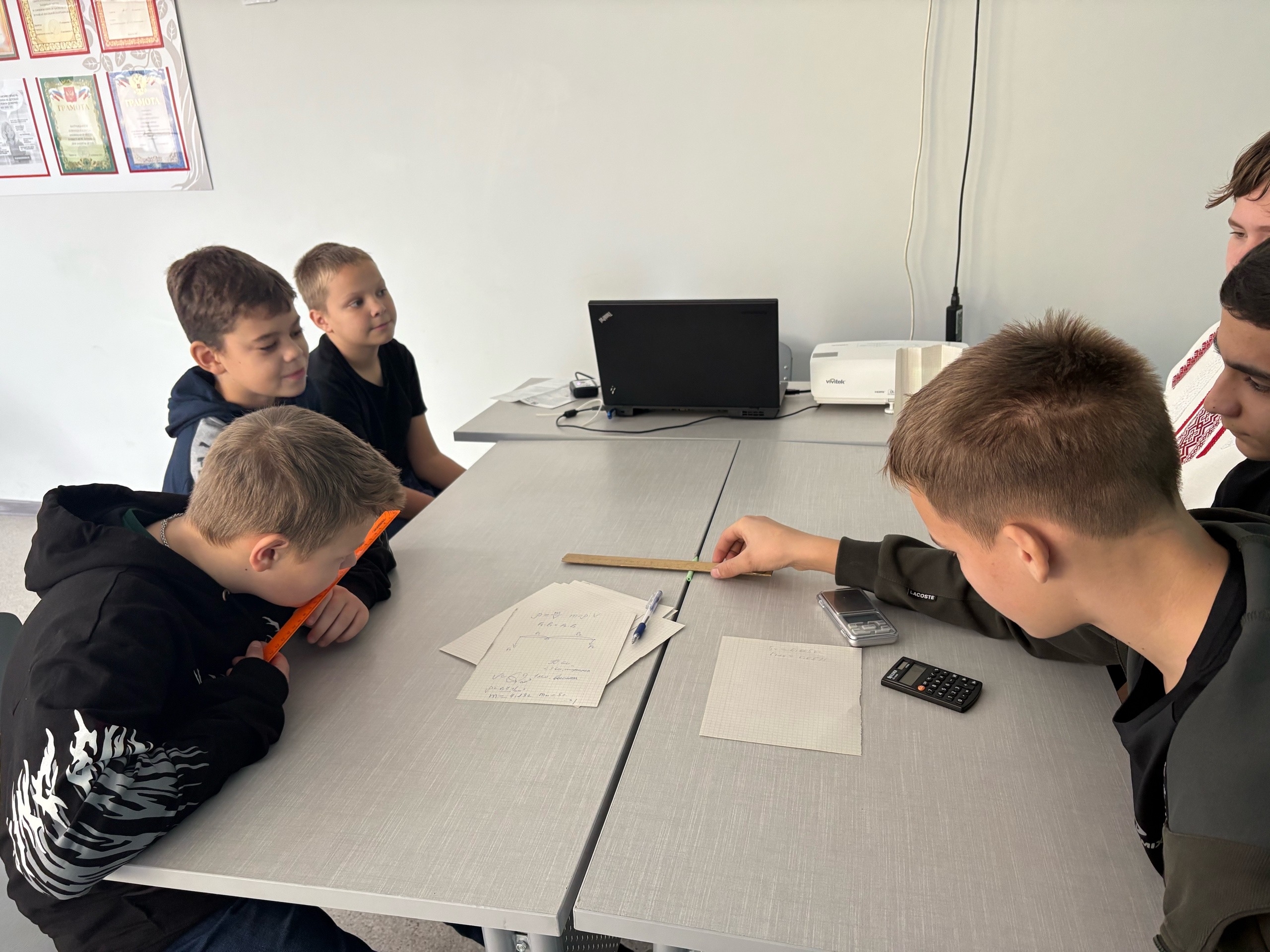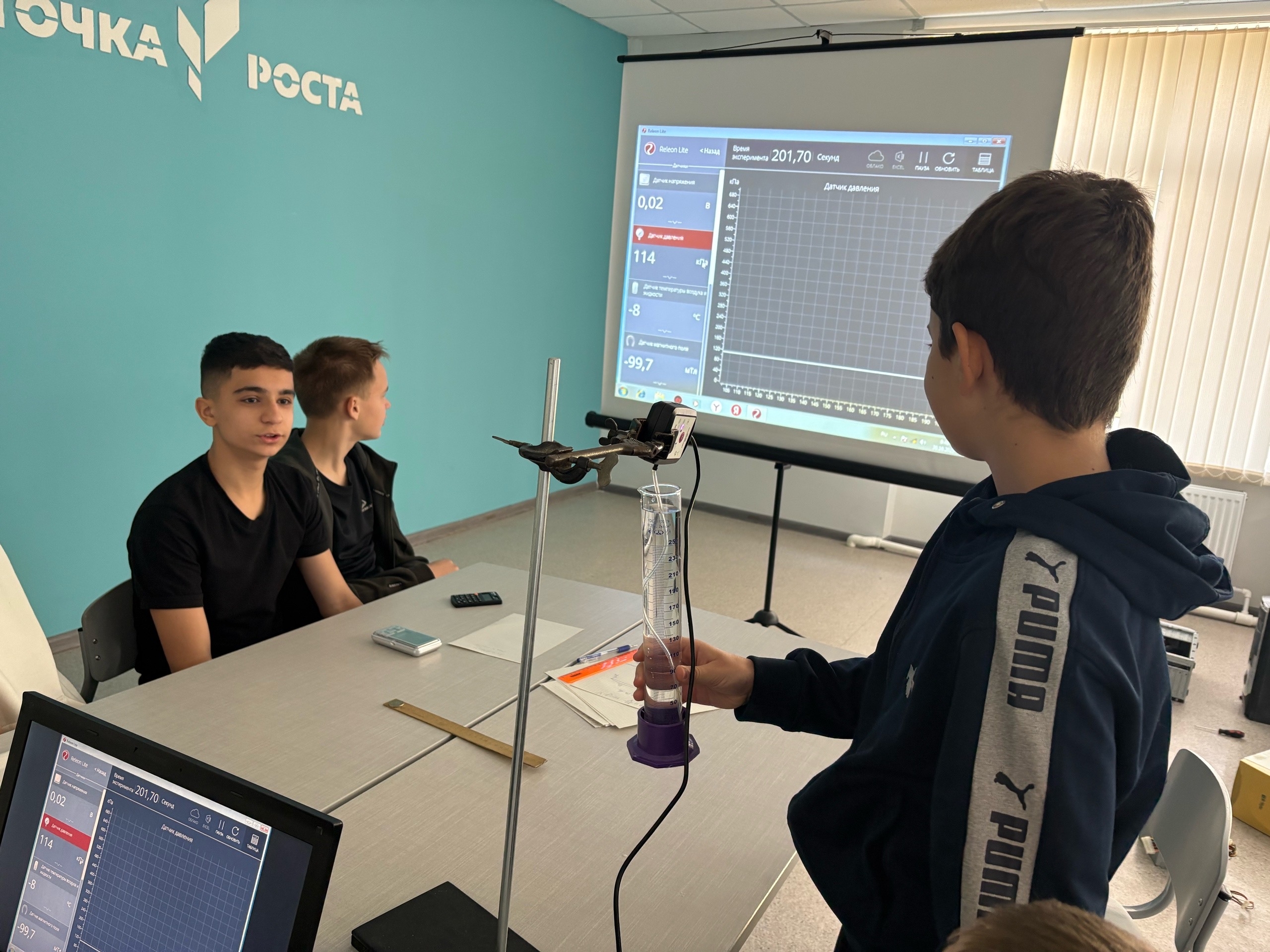 Ребята вместе с учителем вспомнили технику безопасности при работе с оборудованием. Повторили темы: нагревание и охлаждение тел. Количество теплоты. Удельная теплоёмкость вещества. Уравнение теплового баланса. Испарение и конденсация. Насыщенный пар. Давление насыщенного пара. Зависимость давления насыщенного пара от температуры. Абсолютная и относительная влажность воздуха.